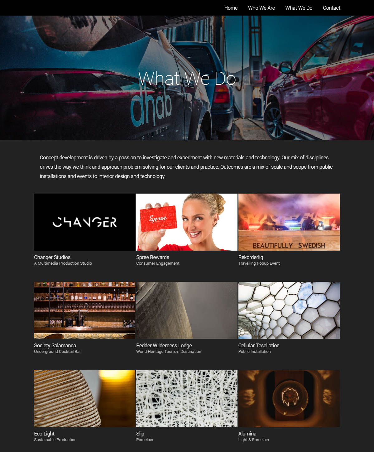 DHAB Studios is a design studio based in Hobart, Tasmania focusing on furniture and commercial fit-outs. After collaborating with them on a number of projects we sat down to create a website that represents their energy as a team and has immediate impact. Yew.